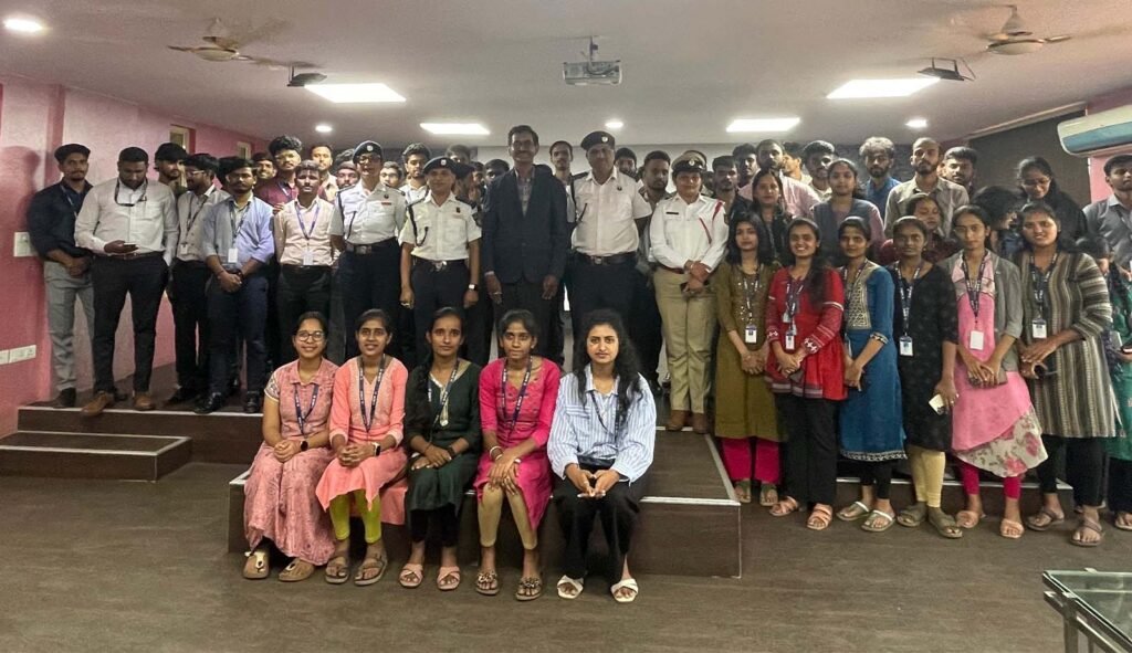 Traffic Awareness Program The Traffic Awareness Program was organized at AIMIT College to educate students about the importance of road safety and responsible driving practices. The session emphasized adherence to traffic rules, the necessity of wearing helmets and seat belts, and the serious risks associated with over-speeding, mobile phone usage while driving, and negligence on